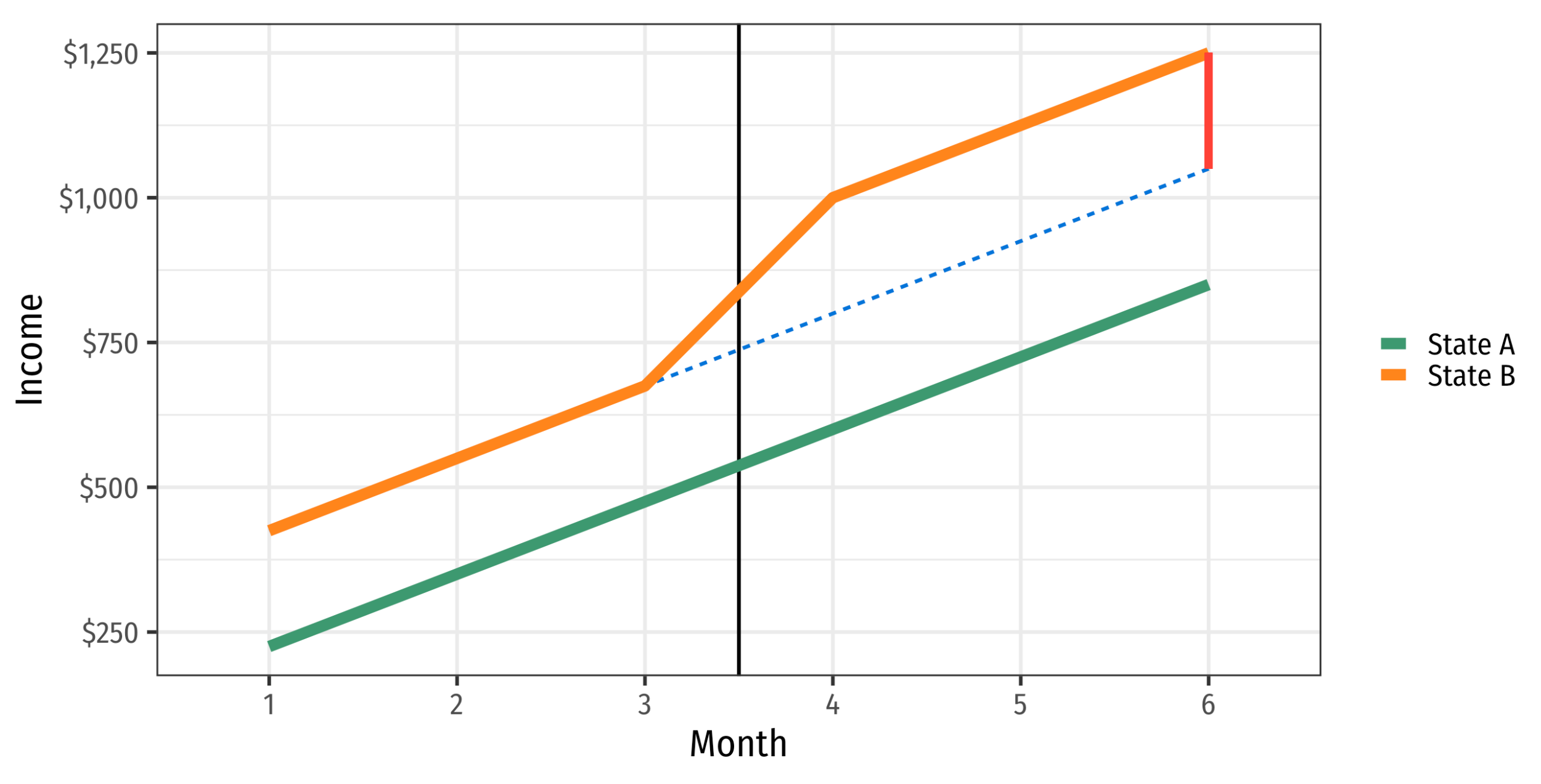 \[ \widehat{ATE} = [\text{Mean}(B) - \text{Mean}(A)] - [\text{Mean}(D) - \text{Mean}(C)] \]