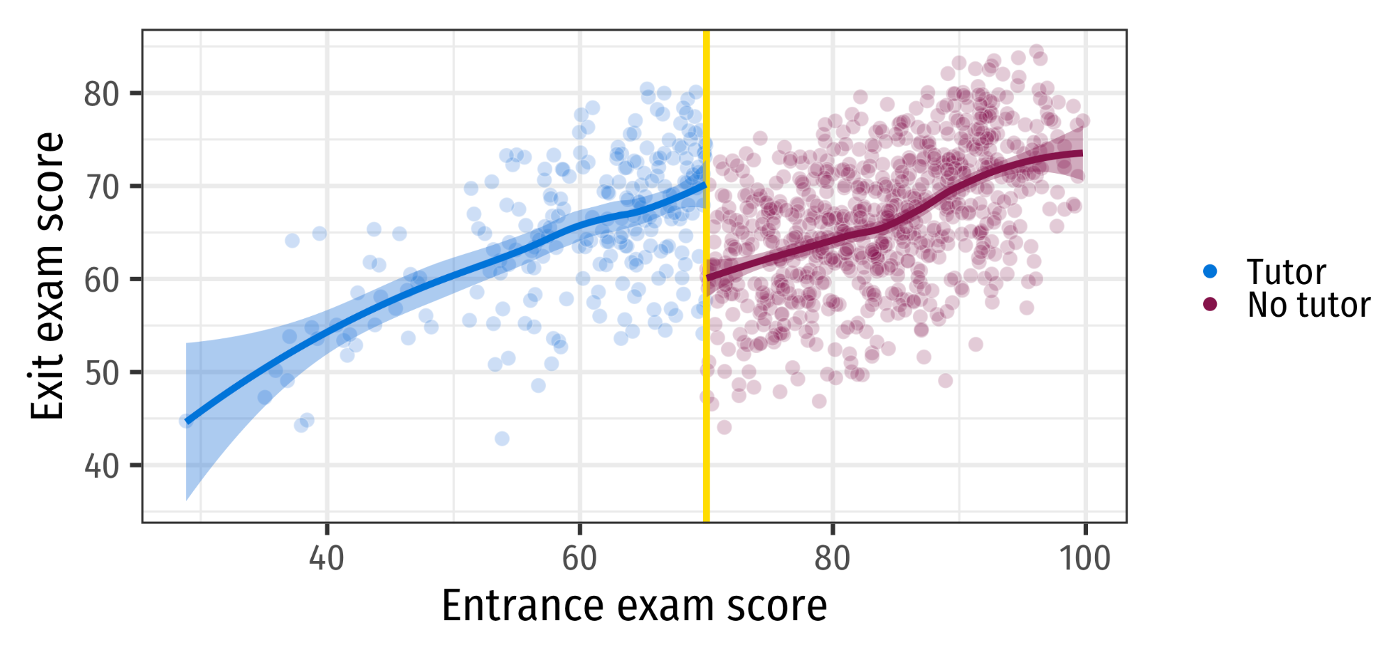However, around the cutoff, treatment assignment is as good as random