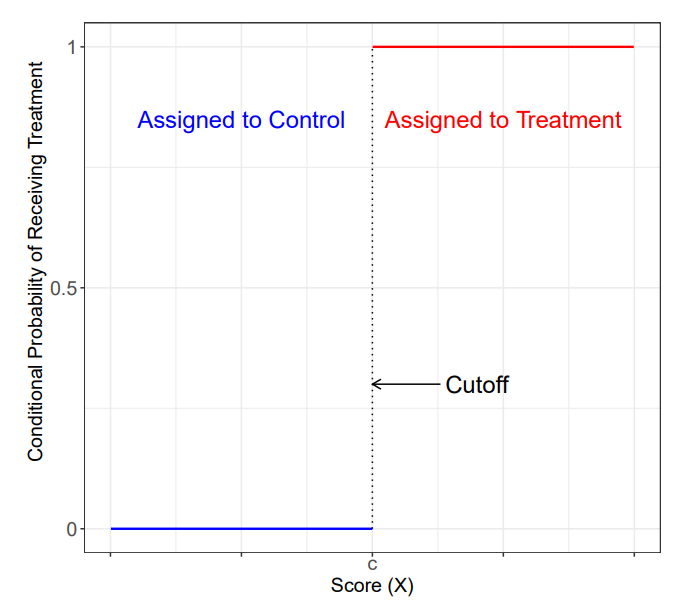 Treatment assignment is deterministic at the cutoff